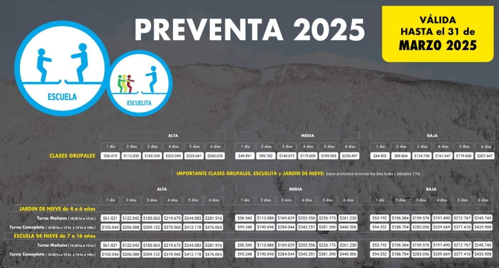 En la base del cerro, ofrecemos un servicio de alquiler de equipo para los amantes de los deportes de nieve. Nuestras tarifas económicas hacen que disfrutar de un día en la montaña sea accesible para todos. Además, contamos con un servicio de guardado de tablas, lo que garantiza que tu equipo esté siempre seguro mientras disfrutas de las instalaciones. Para mayor comodidad, también ofrecemos un servicio de secado de botas, asegurando que siempre estén listas para una nueva aventura. Ven y descubre la mejor opción para disfrutar al máximo de tus días en la nieve. ¡Te esperamos!